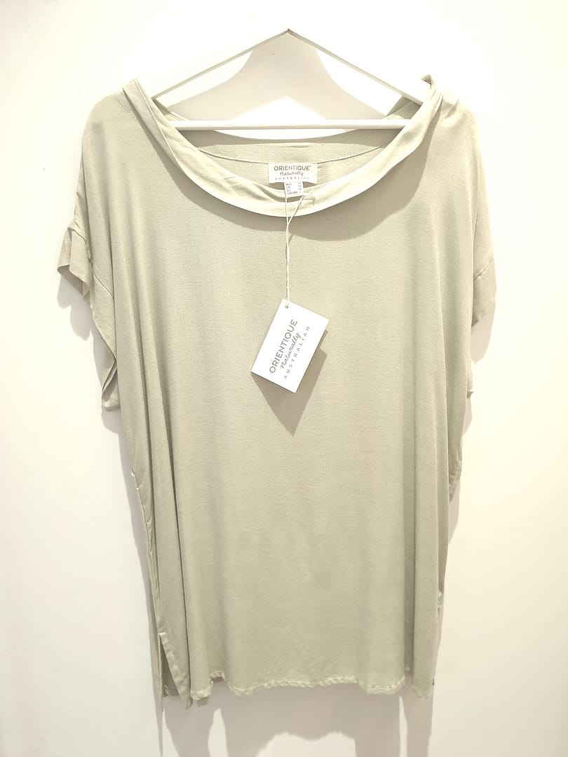 Orientique – Top Folded Neckline – Alfalfa – Linen Blend – Size 16