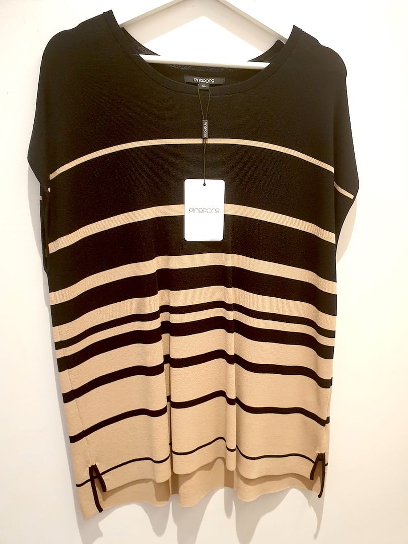 Ping Pong – Black and Faun Horizontal Striped Vest – Size XL