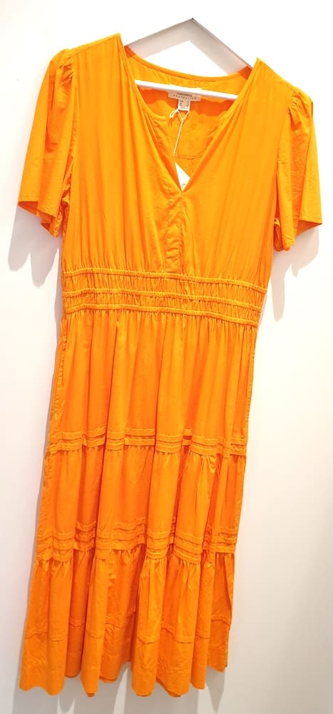 Orientique – Essentials Poplin Dress – Maxi Ruched Waist – Kumquat – Organic Cotton
