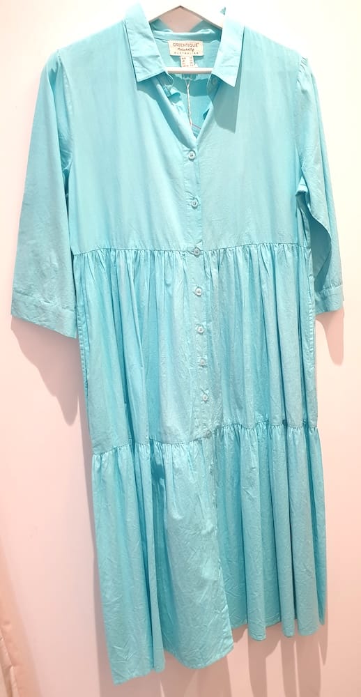 Layered 3/4 Sleeves – Aqua Dress – Organic Cotton