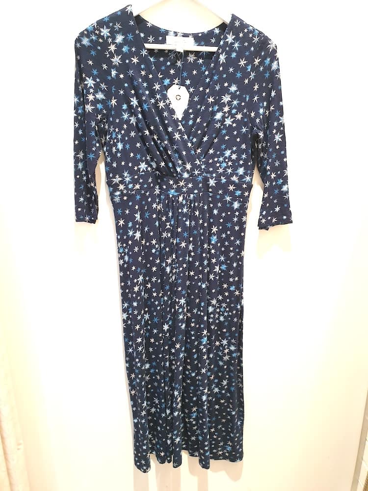 3/4 Chapelle Dress Snow Stars Maritime – Organic Cotton